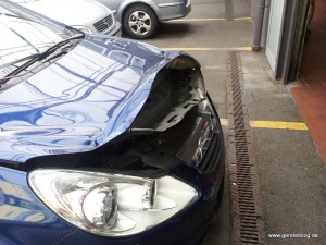 Was Sie nämlich bitte niemals tun sollten: Eine nicht vollständig eingerastete Motorhaube nochmal nachzudrücken. Denn die Chance, dass Ihr Handgriff dabei eine Delle in die Haube verewigt, ist bei modernen Autos recht hoch. Das verwendete Blech einer Motorhaube ist bei den meisten Autos nämlich nur rund 0,4 Millimeter dünn und man unterschätzt gern, was für ein Impulsdruck es auslöst, wenn man „mal eben“ mit geschwellter Brust und ausgestreckten Armen eine nicht gänzlich eingerastete Motorhaube nachdrücken möchte. Das ist nicht professionell.